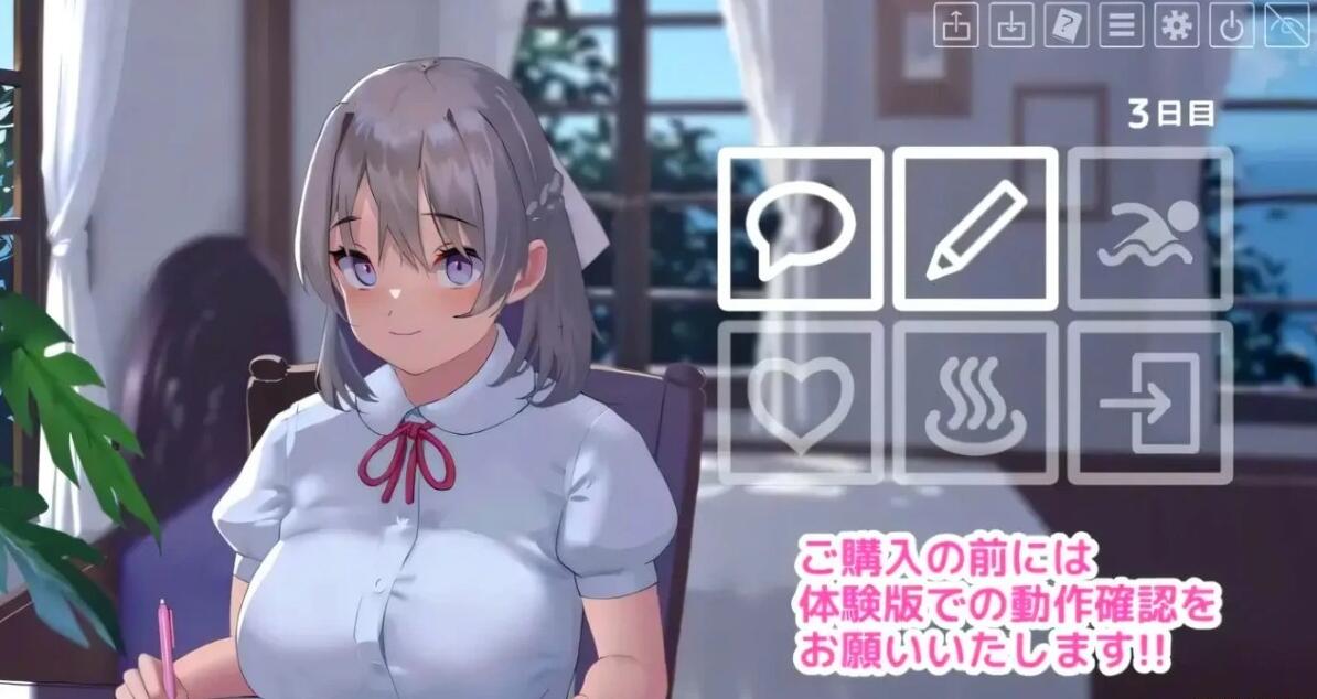 这是一个通过与女主角对话和亲密接触来提升好感度的模拟游戏。即使选择了错误的选项,游戏也不会因此结束,可以悠闲地享受互动。