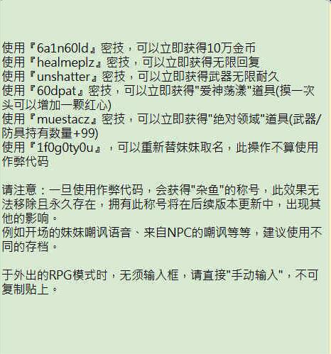 使用『1fog0tyOu』,可以重新替妹妹取名,此操作不算使用
