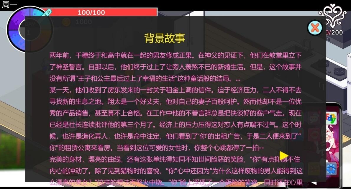 -有趣的游戏系统:短信,相册,魅魔技能,商店道具,对隔壁夫妇的攻略,NPC,怀运系统,有趣的工作小游戏以及阅读(抽奖)等。