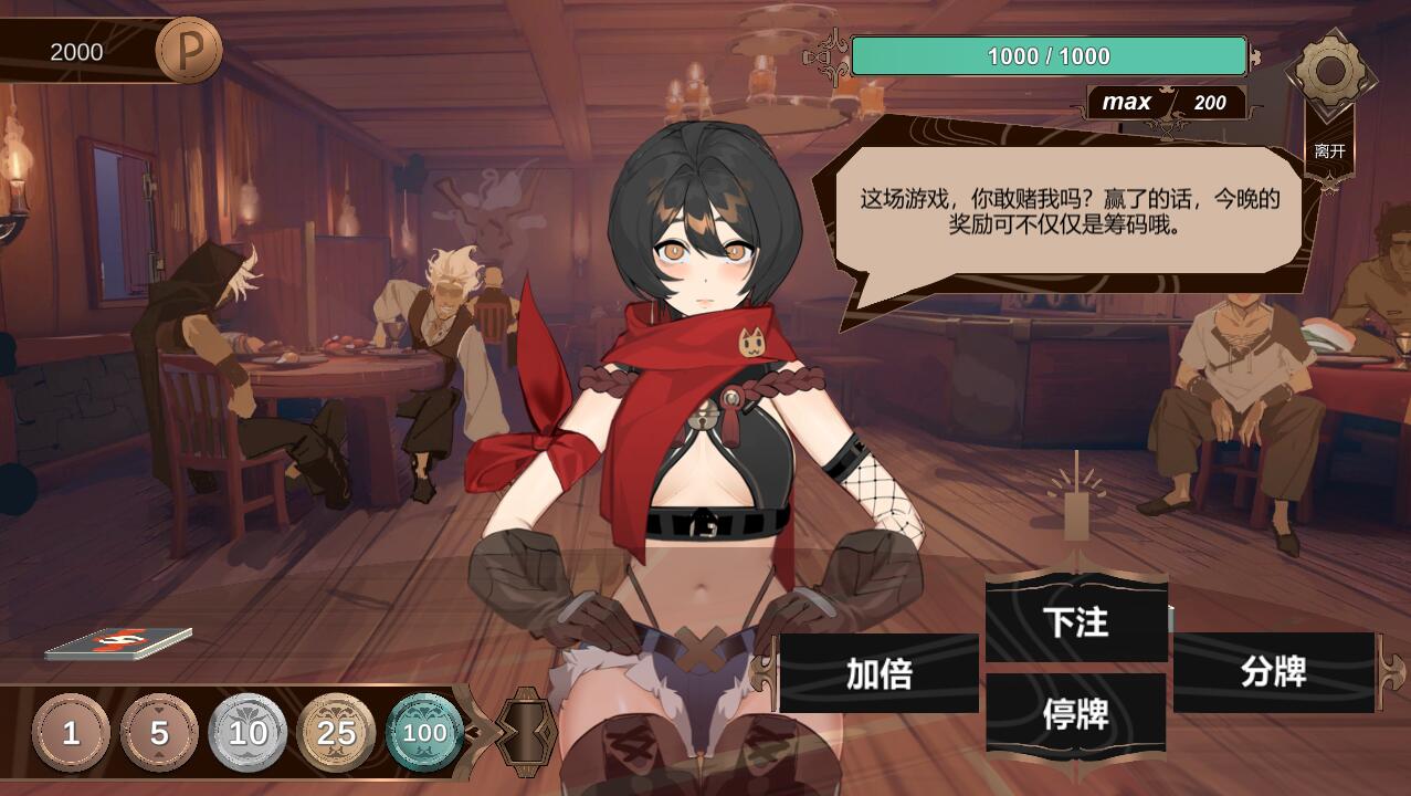 本作是一款以二十一点为基础的对抗型成人卡牌游戏。